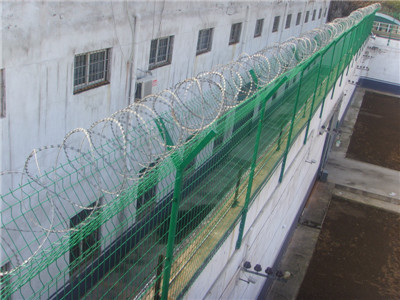 震慑、防翻越效果,材质坚硬,高强度,高张力,造型设计独特,不宜触摸,因而能达到极好的防护隔离效果。监狱围栏规格:网孔:8cm×16cm,7.5cm×15cm,5cm×20cm,5cm×5cm,10cm×10cm,5cm×10cm,6cm×20cm,8cm×16...